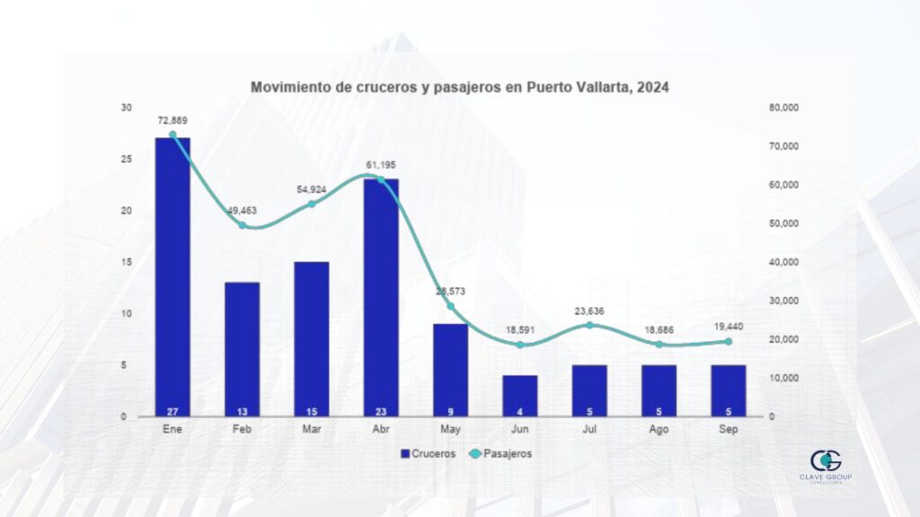 Movimiento de cruceros y pasajeros en Puerto Vallarta, 2024