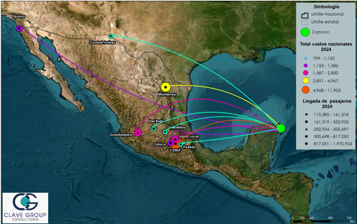 LA CONECTIVIDAD AÉREA DE CANCÚN: PRINCIPALES CONEXIONES NACIONALES