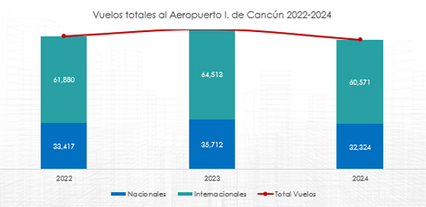 Vuelos totales al aeropuerto I. de Cancún 2022-2024.